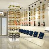 Sử dụng các kệ sát tường để trưng bày những chai rượu thượng hạng, vừa có thể bày bán sản phẩm mà lại tối ưu được không gian tốt hơn. Bên cạnh đó, chiếc cột trụ lớn ở giữa nhà cũng được tận dụng gắn giá xung quanh tạo nên một tòa tháp rượu. Đây có lẽ là điểm nhấn nổi bật nhất chính nhờ việc sáng tạo từ điểm hạn chế cửa hàng mà tạo nên một thiết kế showroom rượu đẹp và vô cùng ấn tượng.