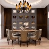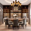 Với không gian nhỏ và hơi bí bách do không có nguồn ánh sáng tự nhiên nên ở mỗi tủ rượu kiến trúc sư sử dụng hậu dán gương màu sáng để có thể giúp không gian sáng hơn. Thiết kế hệ thống ánh sáng khoa học với hệ đèn đa dạng như đèn âm trần, Đèn thả trần, Đèn treo tường, đèn trang trí tạo dựng không gian sáng, nổi bật cả không gian sang trọng ấn tượng.