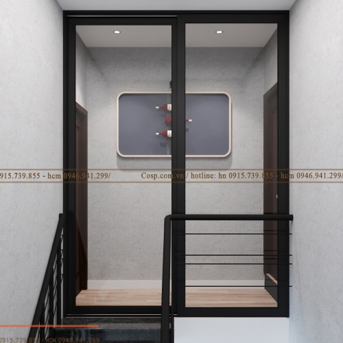 Thiết kế văn phòng làm việc của showroom rượu Wine station bao gồm phòng làm việc của giám đốc và phòng làm việc của nhân viên. Thiết kế phòng làm việc phong cách hiện đại, bố cục đơn giản để tạo môi trường làm việc thoáng, dễ chịu và tối ưu không gian tối đa.
