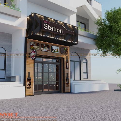 Thiết kế mặt tiền showroom rượu chúng tôi còn sử dụng bộ chữ “Wine station" phát sáng, các hộp tranh in phát sáng như 3D tạo nên điểm khác biệt thu hút. Mặt tiền còn thể hiện đầy đủ các thông tin cần biết của showroom như số điện thoại, địa chỉ…