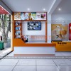 Thiết kế cửa hàng bách hóa tổng hợp được nghiên cứu tỉ mỉ sao cho phù hợp với mọi đối tượng khách hàng ở mọi lứa tuổi. Khu vực mặt tiền được thiết kế nổi bật với 2 gam màu đỏ và cam. Mặc dù đây là 2 tone màu nóng, khá khó kết hợp nhưng với sự khéo léo và sáng tạo của các kiến trúc sư Penviet đã mang tới thiết kế mặt tiền đầy ấn tượng.