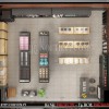 - Chất liệu: làm bằng gỗ melamine, sắt sơn tĩnh điện đen, mika phát sáng và đèn rọi, đèn downlight ánh sáng vàng