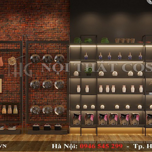 KTS của COSP với kinh nghiệm của mình đã nghiên cứu, sáng tạo và lựa chọn những chất liệu cao cấp để phù hợp với quy mô của cửa hàng.