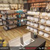 Hệ thống kệ, giá treo trưng bày được đặt sát tường và phân chia số lượng hợp lí giúp tối ưu hóa không gian và tạo cảm giác gọn gàng về mặt thẩm mĩ.