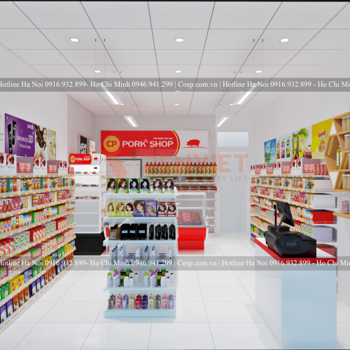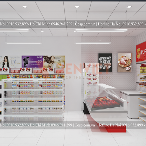 Trước hết xin giới thiệu một chút về Nội thất Cosp nhé. Chúng tôi là một đơn vị thuộc công ty cổ phẩn Kiến trúc nội thất và Xây dựng PenViet. Được thanh lập vào năm 2010 đến nay chúng tôi có hơn 10000 dự án, 9 chi nhánh và 3 nhà xưởng tại 3 miền. Lĩnh vực thiết kế cửa hàng tạp hóa, cửa hàng tiện lợi là một trong những lĩnh vực rất được nhiều khách hàng tin tưởng.