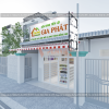 Mặt tiền của cửa hàng tiện lợi này cũng được đầu tư trang trí để nổi bật giữa khu phố cả ban ngày lẫn ban đêm. Một tấm alu nền trắng to được đặt ở tầng 2. Logo cửa hàng, chữ "CỦA HÀNG TIỆN LỢI GIA PHÁT" mica không phát sáng. Bên dưới có ghi địa chỉ . Ánh sáng của biển bảng này được cung cấp bởi 2 chiếc đèn rọi bên trên.