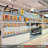 Với những sản phẩm đa dạng , phong phú về màu sắc như này, các KTS nội thất Cosp thiết kế những chiếc kệ, tủ trưng bày có màu sắc đơn giản và nhẹ nhàng. Màu xám được sử dụng trên hầu hết những thiết bị nội thất ở cửa hàng. Với màu này, không gian cửa hàng cũng được thêm sang trọng và hiện đại hơn. Ngoài ra, thiết bị nội thất được làm bằng chất liệu gỗ MDF cao cấp có khả năng chống cong vênh, chống mối mọt, chống nước, phun sơn bệt tạo độ mịn và độ bền của màu sắc cao.