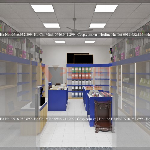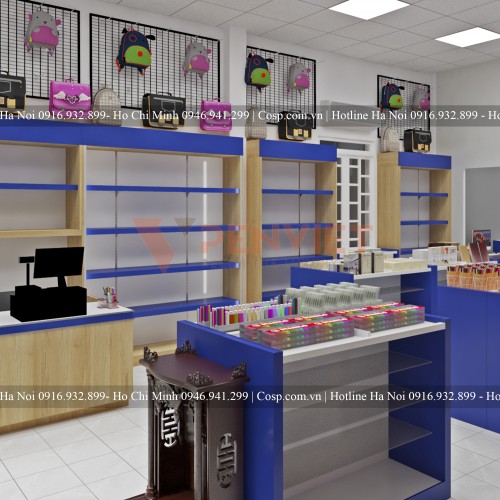 Cùng nhau tìm hiểu những hình ảnh, bản vẽ thiết kế 2D, 3D bản vẽ bố trí mặt bằng cùng những mô tả về nội thất của cửa hàng văn phòng phẩm Tiến Kiệt chị Dung tại Đồng Tháp nhé.