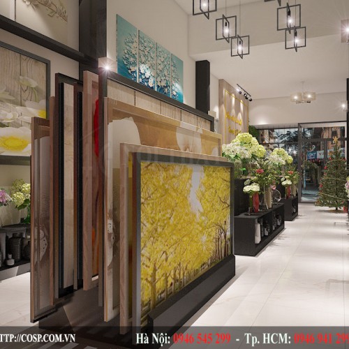 Là một cửa hàng bán đồ nghệ thuật tranh treo tường thì bắt buộc không gian nội thất của hàng phải được bày trí, thiết kế một cách hợp lý thì mới có thể thuyết phục khách hàng mua sản phẩm nghệ thuật của mình được.