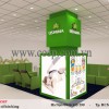Sử dụng phần kệ trưng bày giữa nhà với phong cách độc đáo với tone màu xanh giúp tạo nên điểm nhấn cho gian hàng.