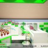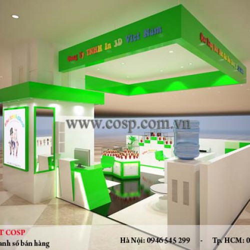 Màu sắc sử dụng cho thiết kế gian hàng là màu trắng và xanh lá cây. Màu trắng biểu trưng cho sự giản dị, trong sáng.