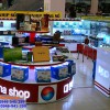 Đặc điểm : Kệ có hình nón, kết cấu gồm 4 tầng, nhỏ dần về bên trên. Kệ được sơn màu đỏ và trắng, Chân kệ được trang trí bằng logo và tên công ty phát sáng . Kệ được làm từ gỗ MDF và gia công bằng cách phun sơn Pu.