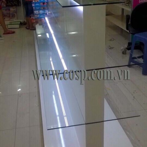 Kệ trưng bày CPKTB143 được thi công cho cửa hàng của Chị Ánh tại Long An. Vật liệu được dùng để thi công kệ trưng bày là gỗ MDF phun sơn PU và kính cường lực.