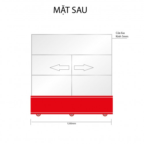 Kích thước: dài 1,2m cao 1,2m sâu 0,45m