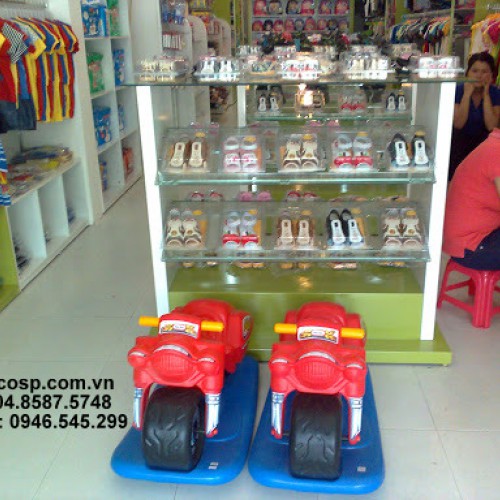 Loại đợt kính nghiêng: công năng chính là bày bán giày dép cho bé