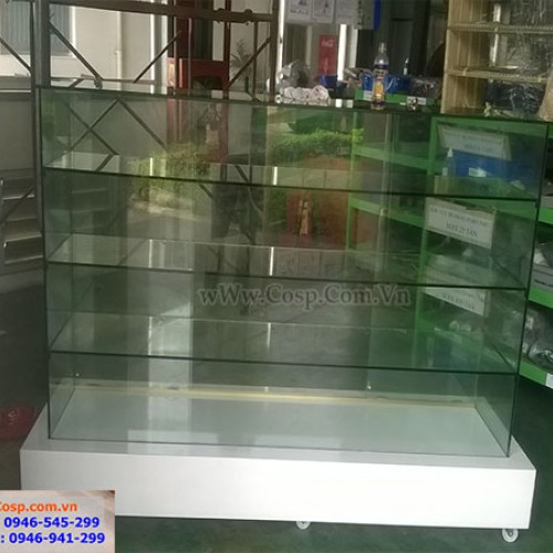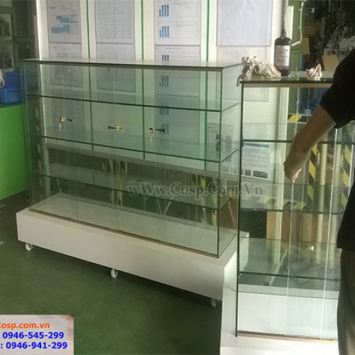 Chất liệu: Chân tủ bằng gỗ MDF Malaysia phun sơn PU - Thân tủ là kính 10mm