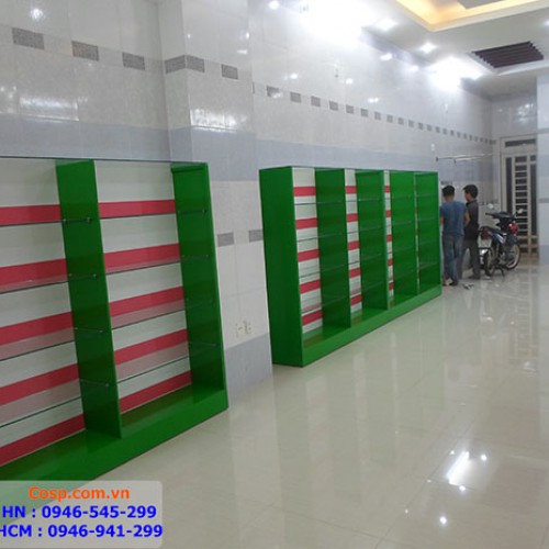 Những hình ảnh phía dưới là hình ảnh của các kệ trưng bày đã được sản xuất và đang được lắp đặt tại cửa hàng của chị Bưng ở Nhơn Trạch: