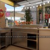 Bếp nấu, bồn rửa và máy tính tiền được lắp đặt cố định ở phía trước với lớp chắn bằng nhựa cứng trong suốt để tránh khói bụi, đảm bảo vệ sinh cho thực phẩm. Bức tường phía sau được gắn những tấm biển mica với danh sách menu của những món cháo khác nhau cho khách hàng lựa chọn. Việc phân chia khu vực khoa học thế này giúp tạo được khoảng không rộng rãi ở giữa để nhân viên di chuyển dễ dàng hơn.