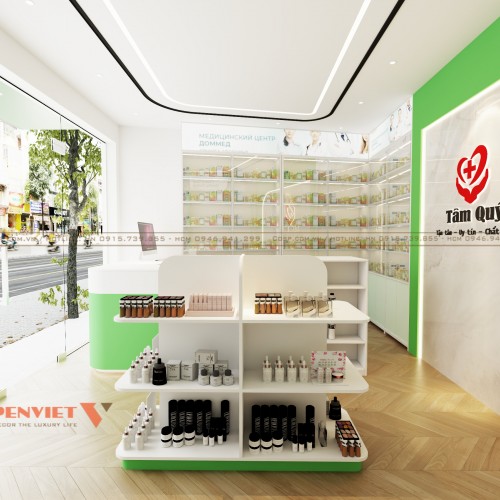 Bài viết chia sẻ mẫu thiết kế nhà thuốc Tâm Quý hiện đại và chuyên nghiệp đến bạn đọc. Nếu bạn cần tư vấn thêm về các ý tưởng trang trí không gian khác, hãy liên hệ PenViet ngay hôm nay.a