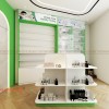 Hệ thống ánh sáng trắng dịu nhẹ kết hợp cùng cửa kính lớn tạo ra không gian mở, giúp tận dụng ánh sáng tự nhiên. Điều này không chỉ tiết kiệm năng lượng mà còn mang lại cảm giác thoáng đãng và hiện đại cho nhà thuốc. Hơn nữa, PenViet sử dụng màu xanh lá làm chủ đạo kết hợp với sắc trắng tinh tế, không gian nhà thuốc mang lại sự thoải mái cho khách hàng khi bước vào.