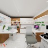 Ngay bên cạnh khu tiếp tân bạn sẽ tìm thấy kệ tủ trưng bày dược phẩm, thiết bị y tế cần thiết cho khách hàng. Thiết kế tủ kết hợp giữa kính trong suốt và gỗ MDF cốt xanh, đèn LED nhấn nhá để khách hàng dễ dàng quan sát và chọn mua.