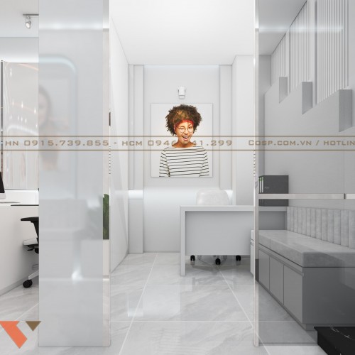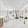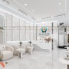 Bước vào bên trong, khách hàng sẽ lập tức bị ấn tượng bởi khu vực lễ tân và tiếp khách rộng rãi, thoáng đãng và vô cùng trang nhã. Không gian được thiết kế mở, sử dụng màu trắng chủ đạo kết hợp với các chi tiết nội thất tông kem và ánh kim, mang đến cảm giác sạch sẽ.