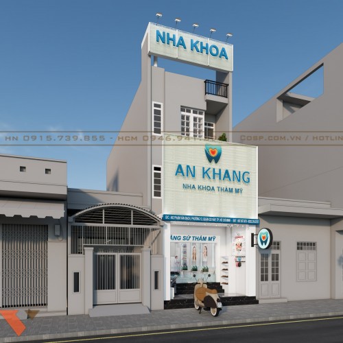 Tọa lạc tại số 462 Phạm Văn Bạch, phường 15, quận Gò Vấp, TP. Hồ Chí Minh, phòng khám nha khoa thẩm mỹ An Khang không chỉ là nơi chăm sóc nụ cười mà còn đảm bảo yếu tố kết hợp công năng y khoa và vẻ đẹp thẩm mỹ. Mời bạn cùng khám phá các chi tiết thiết kế phòng khám nha khoa An Khang từ bảng hiệu nổi bật bên ngoài đến không gian nội thất đậm chất hiện đại bên trong phòng khám.