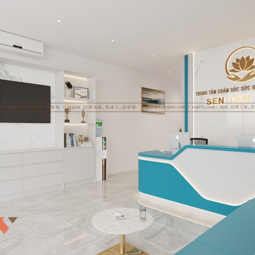 Thiết kế phòng khám Sen Tâm Việt hiện đại với không gian nội thất tinh tế và thân thiện. Từ biển bảng quảng cáo nổi bật bên ngoài, đến các khu vực chức năng đều tiện nghi và bố trí hợp lý. Nếu quý khách có nhu cầu thiết kế nội thất phòng khám hãy liên hệ PenViet ngay hôm nay.