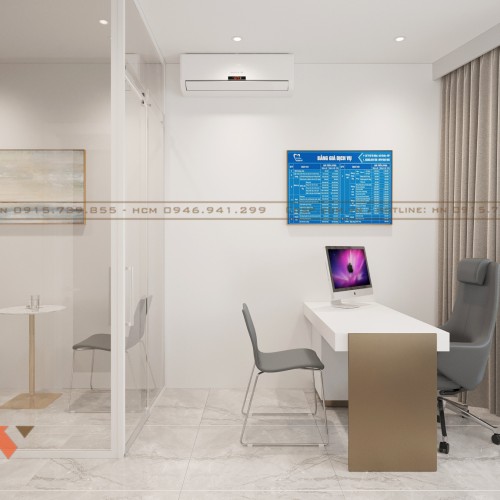 Phòng tư vấn được đặt ngay gần sảnh đón khách, tạo sự thuận tiện cho việc hướng dẫn và giải đáp thắc mắc của khách hàng. Bàn tư vấn được thiết kế nhỏ gọn, ghế ngồi thoải mái, giúp khách hàng có thể ngồi thảo luận một cách thoải mái và riêng tư. Đây là nơi nhân viên tư vấn sẽ cung cấp thông tin về các dịch vụ của phòng khám để chọn gói khám phù hợp.
