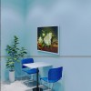 Ngoài ra, tại phòng khám còn bố trí khu vực ngồi nghỉ thư giãn cho khách hàng bệnh nhân hay người nhà. Chiếc ghế thiết kế đơn giản màu xanh dương nổi bật cùng bức tranh trang trí mang đến không gian rất thoải mái cho người sử dụng.