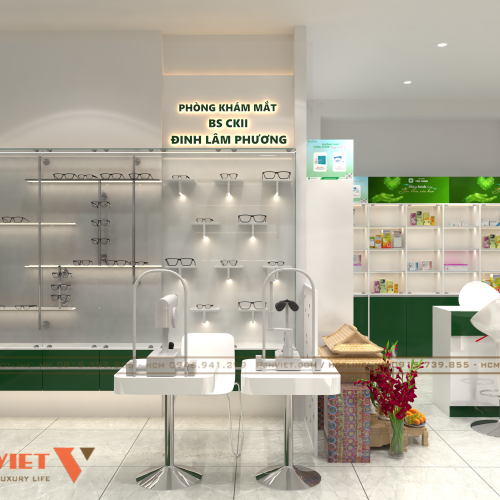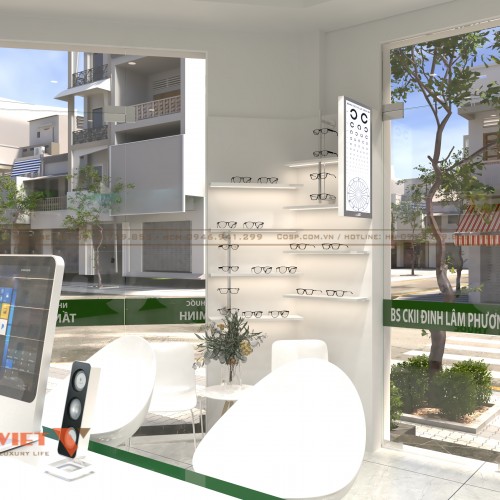 Thiết kế nội thất phòng khám mắt Tấn Minh kết hợp nhà thuốc đảm bảo yếu tố thẩm mỹ và công năng sử dụng. Với khu vực trưng bày kính mắt sang trọng, khu đo khám hiện đại và quầy thuốc ngăn nắp đem đến cho khách hàng trải nghiệm hoàn hảo. Hãy liên hệ PenViet ngay hôm nay nếu bạn cần tư vấn thiết kế nội thất cho công trình của mình.