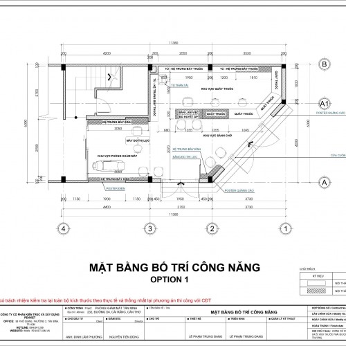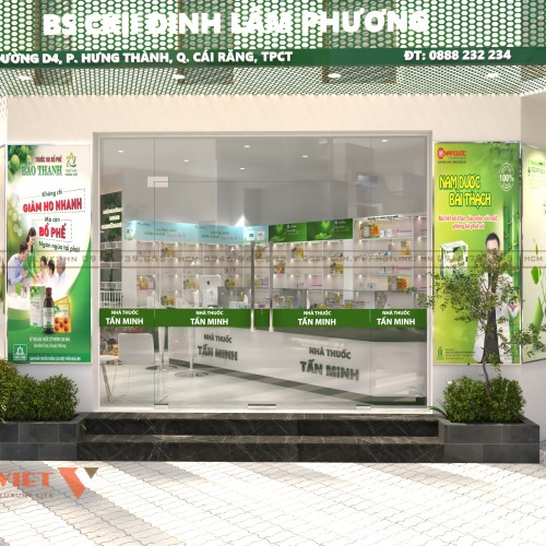 Nhà thuốc Tấn Minh sử dụng hệ thống quầy kệ kiểu dáng hiện đại, bố trí khoa học tạo tiện lợi cho khách hàng mua sắm. Vừa kết hợp nhà thuốc vừa khám mắt là phương án kinh doanh của chủ đầu tư công trình này.