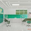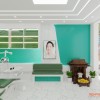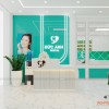 Tiếp đến là khu vực khám nha với 2 ghế răng kiểu dáng hiện đại, màu sắc bắt mắt. Gam màu xanh trắng kết hợp vừa thời thượng vừa không lo sợ lỗi mốt theo thời gian. Phía cuối là vách logo tăng nhận diện thương hiệu thêm lần nữa cho phòng khám nha.