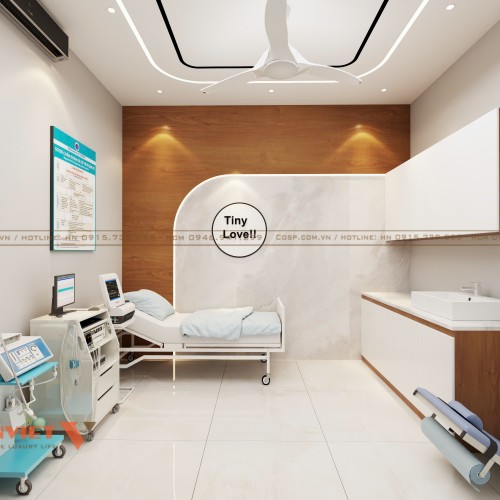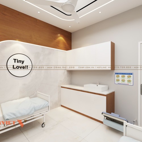 Phòng thủ thuật là khu vực quan trọng yêu cầu sự sạch sẽ, gọn gàng và tuân thủ nghiêm ngặt tiêu chuẩn vệ sinh, khử khuẩn. Nội thất trong phòng thủ thuật được bố trí gọn gàng, dễ dàng vệ sinh, đảm bảo môi trường vô trùng tuyệt đối. Tủ đựng dụng cụ và thiết bị y tế bằng gỗ MDF cốt xanh bền bỉ để bảo quản tốt nhất các dụng cụ hỗ trợ.
