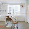 Khu vực tầng 2 phòng khám nha gồm có sảnh chờ, phòng nha chung, phòng chỉnh nha và phòng tiệt trùng. Nội thất trong các phòng được sắp xếp gọn gàng và khoa học. Sử dụng màu sắc chủ đạo là trắng kết hợp với xanh ngọc tạo cảm giác thoải mái cho bệnh nhân.