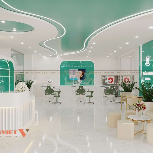 Tổng thể thiết kế nội thất phòng khám nha Tuấn Hưng