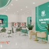 Đối diện quầy lễ tân là khu vực tiếp đón khách hàng để khách thoải mái nhận sự tư vấn từ nhân viên. Bàn ghế tiếp đón được thiết kế đa dạng kiểu dáng từ sofa dài đến sofa đơn hiện đại. Ghế ngồi bọc nệm êm ái mang lại sự thoải mái cho khách hàng trong suốt quá trình chờ đợi.
