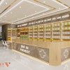 Tone gỗ sáng màu để không gian trở nên rộng rãi và thoáng đãng tạo cảm giác nhẹ nhàng khi bước vào. Đồng thời, PenViet còn bố trí đèn LED hắt sáng đan xen trong các ô kệ tủ để làm nổi bật cho sản phẩm trưng bày.