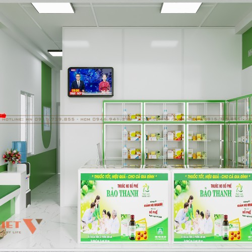 Quầy thuốc sử dụng kính trong suốt giúp trưng bày sản phẩm hiệu quả
