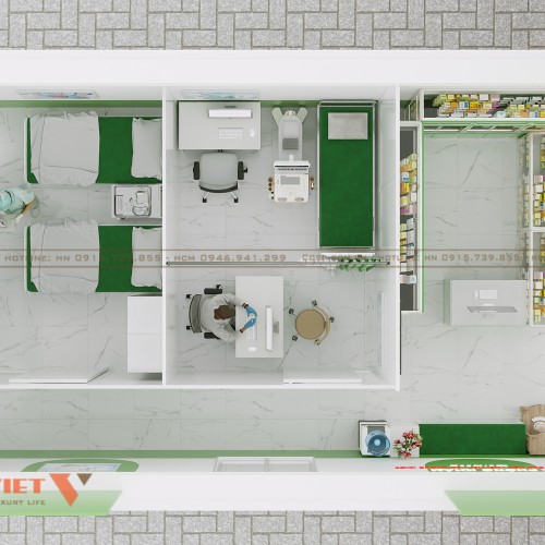 Thiết kế phòng khám nội và nhà thuốc Hải Hưng kết hợp là giải pháp kết hợp giữa tính thẩm mỹ và công năng sử dụng. Không gian khám chữa bệnh và bán thuốc chuyên nghiệp thể hiện được sự tận tâm của thương hiệu trong chăm sóc sức khỏe khách hàng. Trong bài viết này, chúng ta sẽ cùng tìm hiểu chi tiết về mẫu thiết kế này do PenViet triển khai.