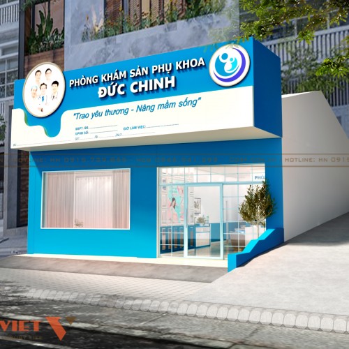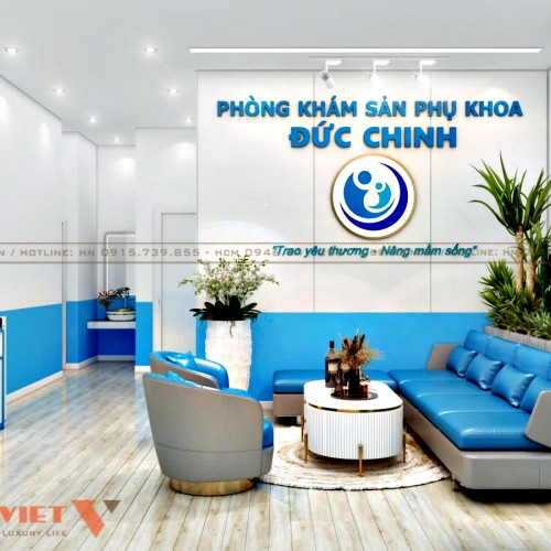 Phía sau là vách logo thương hiệu tăng nhận diện, giúp khách hàng ghi nhớ hơn về phòng khám sản Đức Chinh.