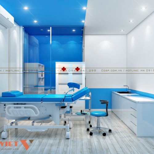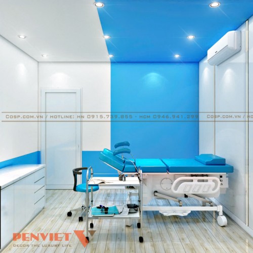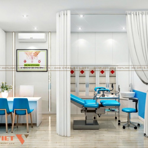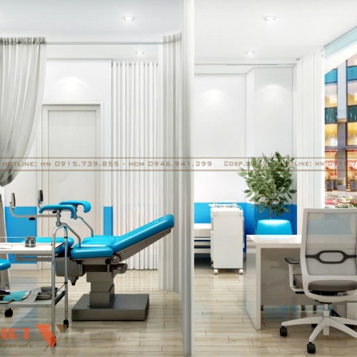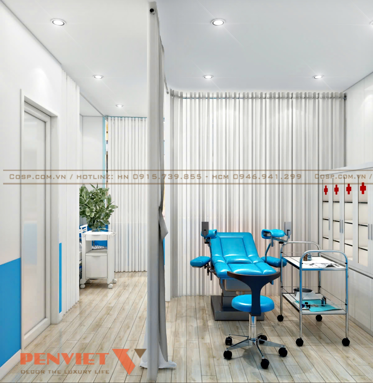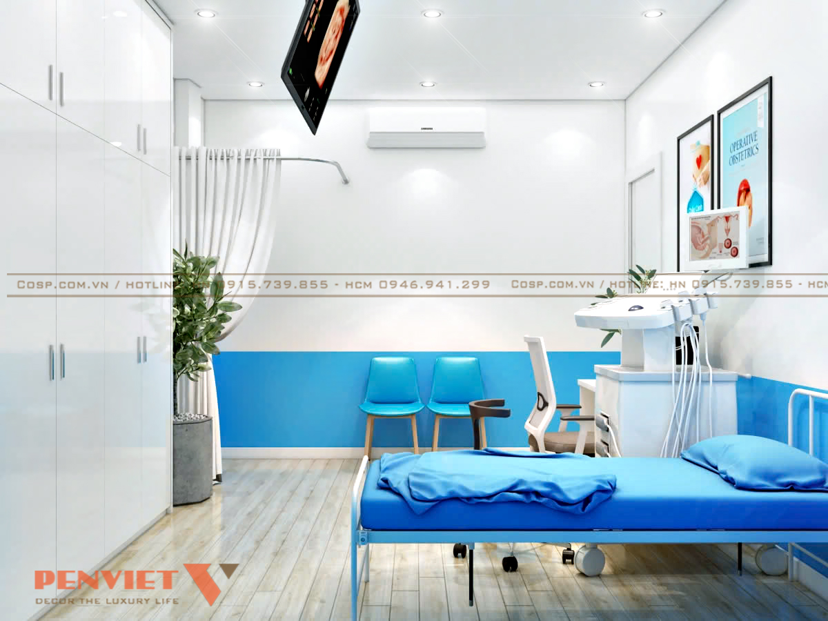 Phòng khám được bố trí công năng gồm các khu vực chức năng như: sảnh lễ tân đón khách, phòng tư vấn, phòng siêu âm, phòng khám phụ khoa, phòng tiểu phẫu. Sự bố trí nội thất hài hòa sẽ đảm bảo phòng khám thực hiện đúng chức năng chuyên môn về khám và điều trị.