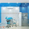 Quầy lễ tân làm việc sử dụng chất liệu gỗ MDF phủ laminate màu trắng xanh kết hợp đèn LED chiếu sáng. Sự chuyên nghiệp và tận tâm của nhân viên sẽ đem đến sự hài lòng và an tâm cho bệnh nhân.