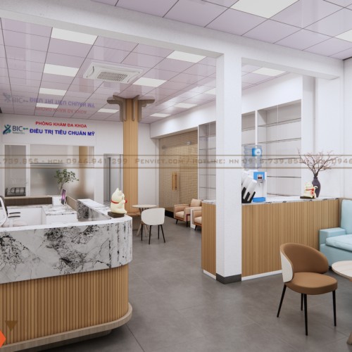 Thiết kế phòng khám BIC Nano Cell tại Bình Tân có sự cân bằng giữa công năng, thẩm mỹ và sự thoải mái trong môi trường y tế. Dự án 300m2 do PenViet triển khai đã chia không gian thành các khu vực rõ ràng được bố trí khoa học và hợp lý. Đây là điều quan trọng góp phần xây dựng hình ảnh thương hiệu BIC Nano Cell trong mắt bệnh nhân.