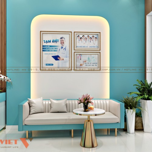 Không chỉ tập trung vào công năng, phòng khám còn chú trọng đến yếu tố cảm xúc thông qua cách bài trí nội thất. Những chi tiết nhỏ như khung ảnh đội ngũ bác sĩ, bằng cấp, cúp lưu niệm hay các câu slogan truyền cảm hứng trên tường không chỉ làm đẹp không gian mà còn mang đến sự an tâm cho bệnh nhân.