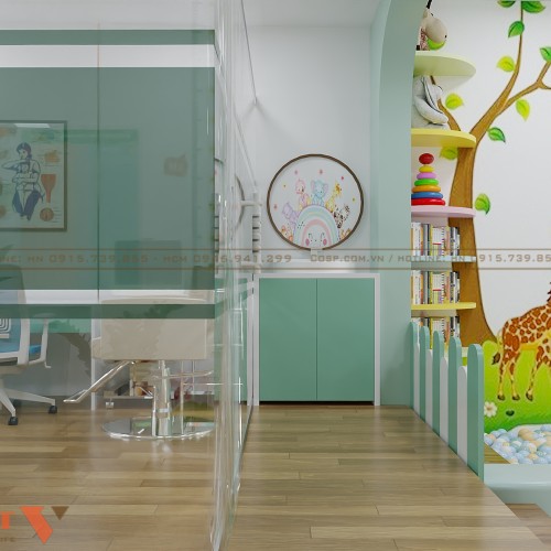 Nội thất phòng khám được PenViet thiết kế với sự chú trọng đến từng chi tiết nhỏ, đảm bảo tính thẩm mỹ và chức năng. Mỗi khu vực trong phòng khám đều được bố trí hợp lý, tạo nên một không gian vừa thoải mái vừa thân thiện cho các bệnh nhân nhí.