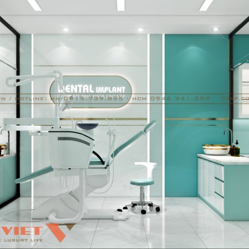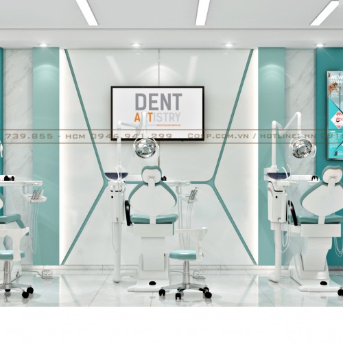 Việc sử dụng tông màu đồng bộ giữa ghế nha và không gian nội thất tạo nên một thể thống nhất về mặt thị giác. Không gian được bố trí hệ thống thiết bị y tế cao cấp và tuân thủ nghiêm ngặt tiêu chuẩn vô trùng.