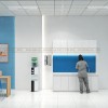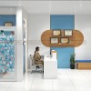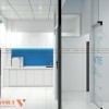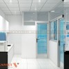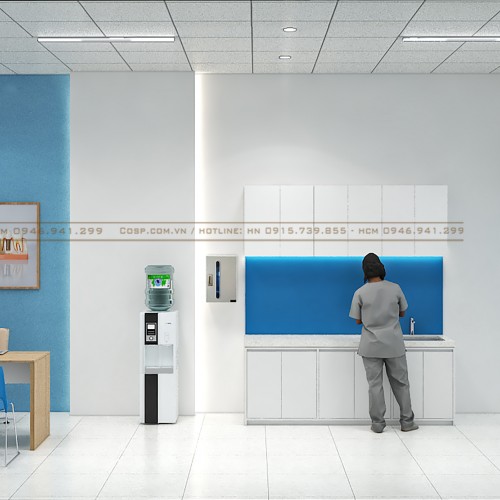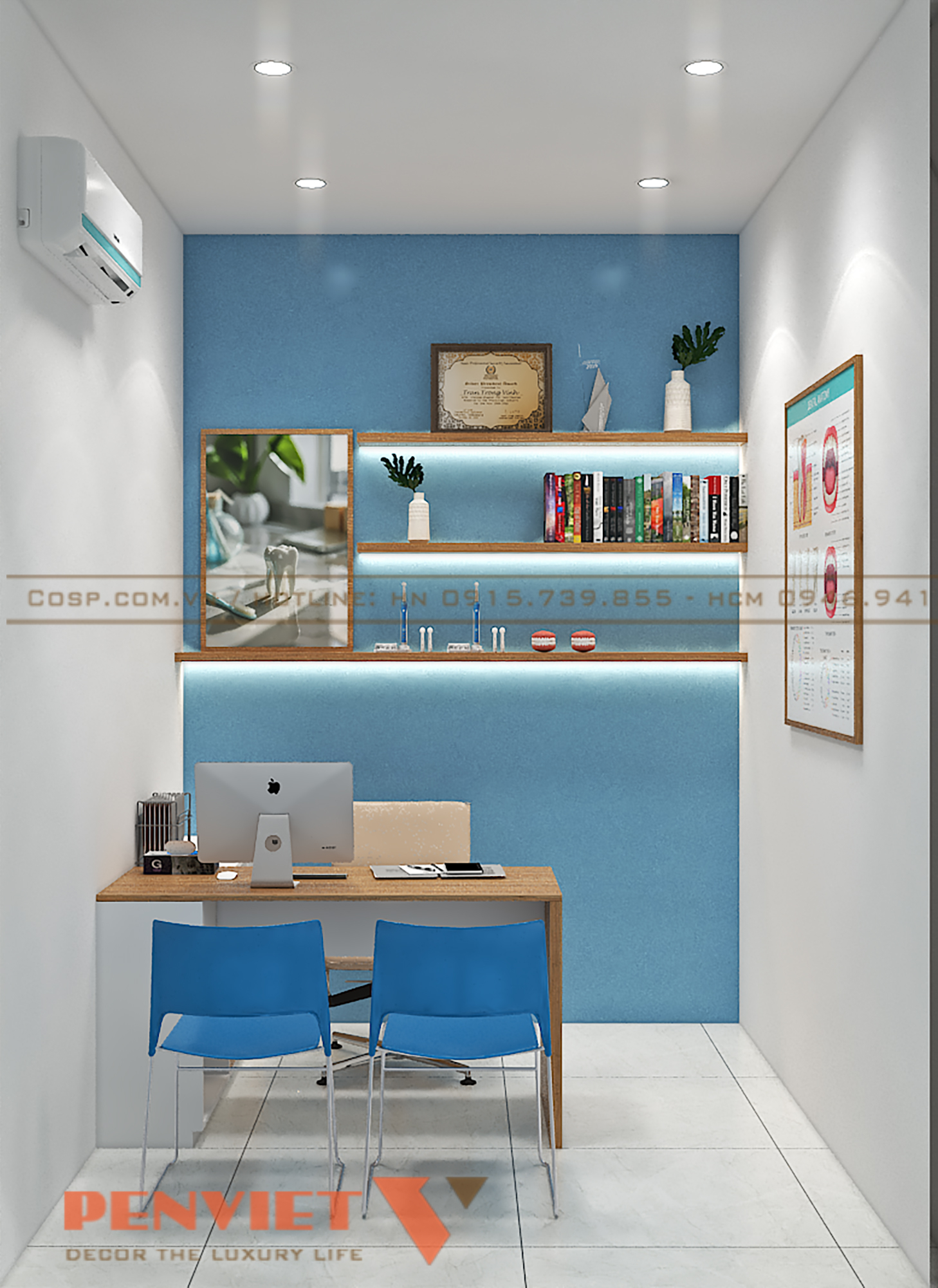 Nằm ở góc bên phải chính là một phòng đa chức năng nhỏ gọn, phù hợp để tư vấn bệnh nhân hoặc lưu trữ tài liệu. Nội thất tại đây gồm có bàn làm việc, tủ tài liệu, ghế ngồi cùng việc dùng màu sắc xanh khéo léo với tính thẩm mỹ cao.