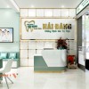Quầy lễ tân là nơi đầu tiên khách hàng sẽ tiếp xúc khi bước vào phòng khám để được hỗ trợ, tư vấn dịch vụ. Quầy có màu chủ đạo là trắng kết hợp xanh pastel nhạt và đường viền vàng kim bắt mắt. Đường nét thiết kế mềm mại tạo cảm giác gần gũi cũng như đảm bảo an toàn cho khách hàng.