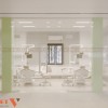Màu chủ đạo tại khu vực này là trắng và xanh pastel, giúp không gian luôn tràn đầy năng lượng tích cực, đồng thời gợi lên cảm giác sạch sẽ và chuyên nghiệp vốn rất cần thiết trong lĩnh vực y tế. Sự liên kết trực quan giữa lễ tân và phòng điều trị phía trong tạo cảm giác rộng rãi hơn nhiều so với diện tích thực tế chỉ 80m2. Toàn bộ yếu tố thiết kế tại khu vực sảnh đều hướng đến mục tiêu nâng cao trải nghiệm khách hàng và xây dựng hình ảnh phòng khám hiện đại ngay từ ánh nhìn đầu tiên.
